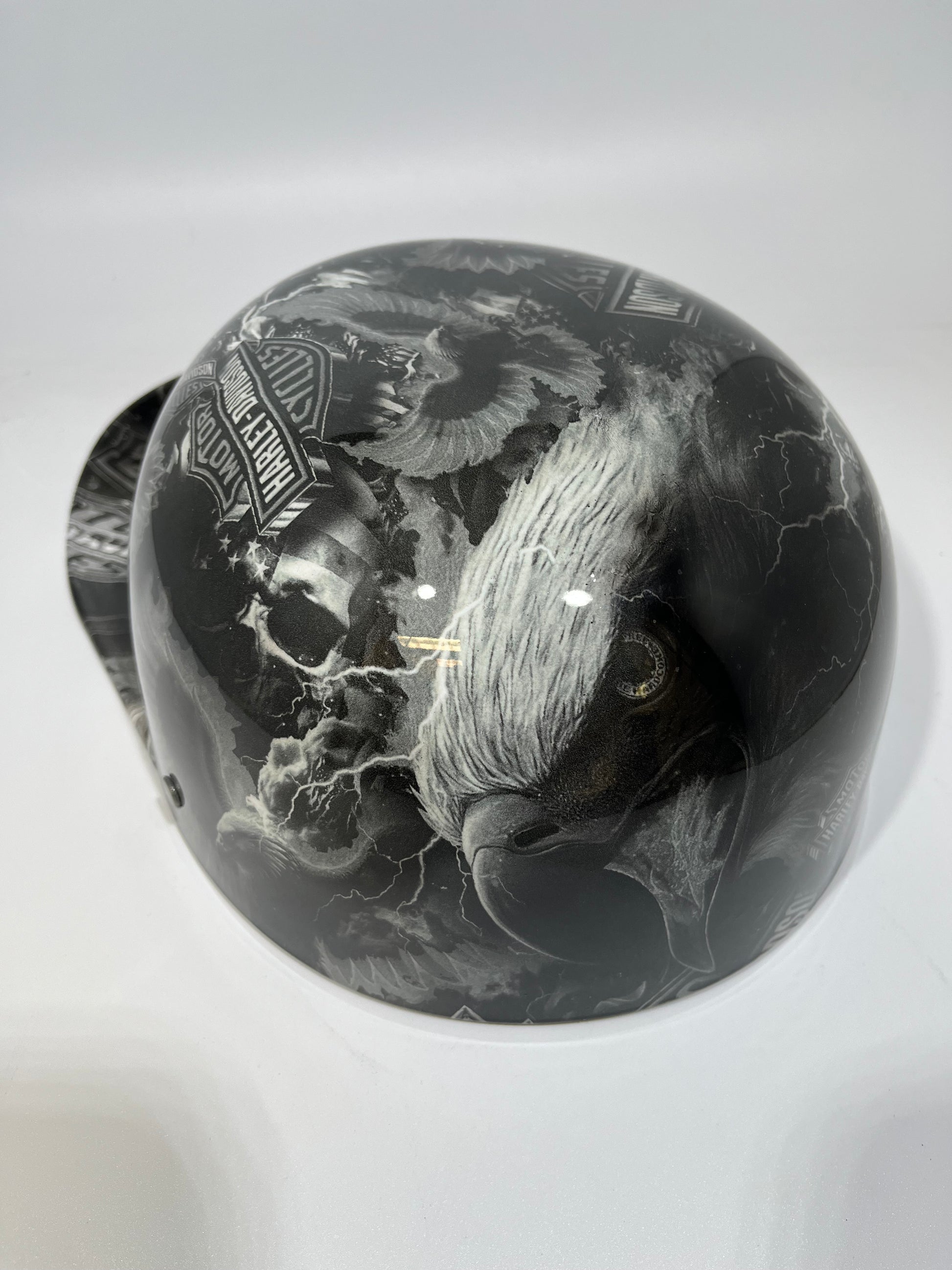 Baseball Cap Style Motorcycle Helmet HARLEY EAGLE BLACK & WHITE