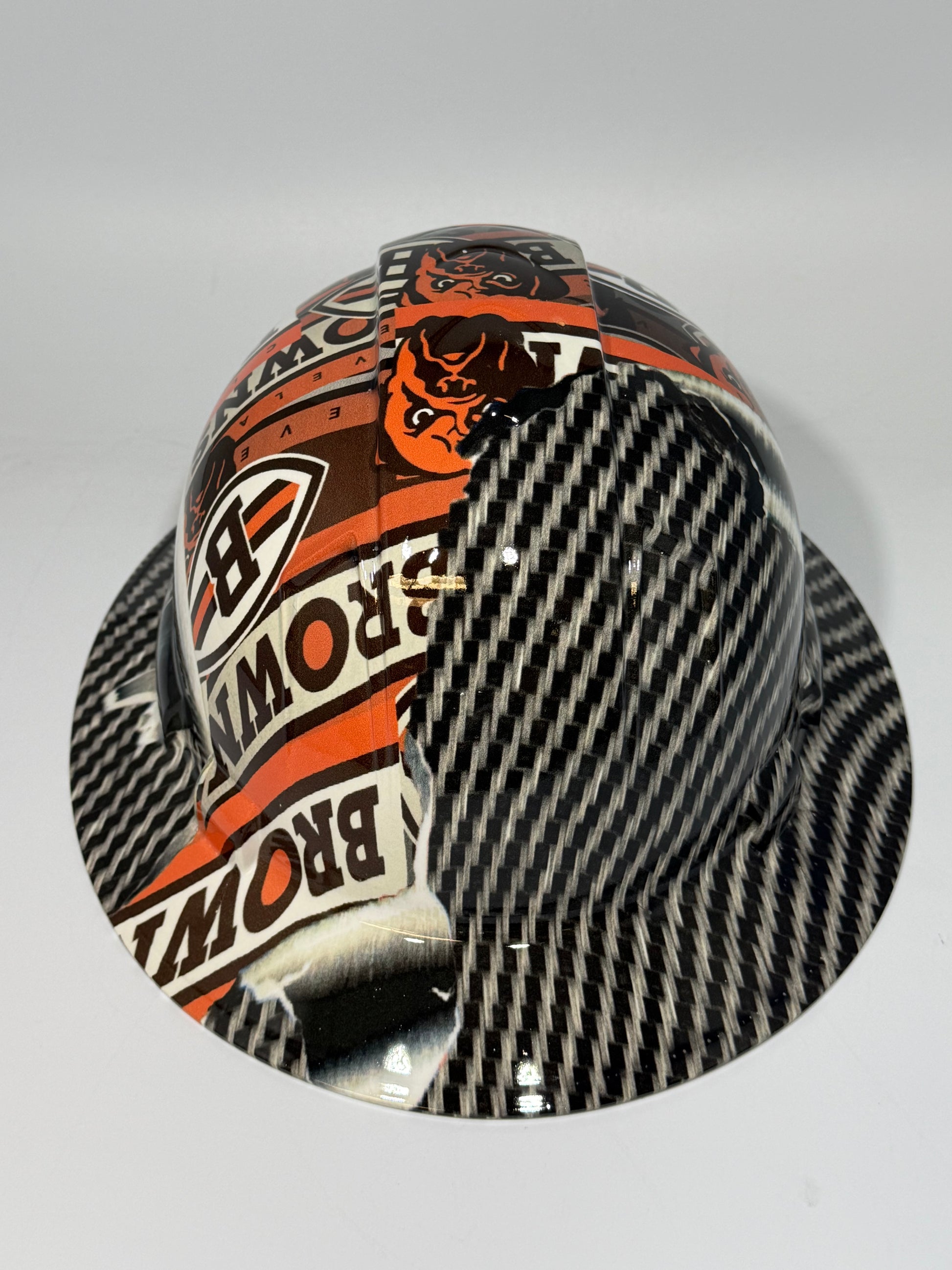 Full Brim Hard Hat Hydro Dipped BROWNS RIP TEAR CARBON FIBER
