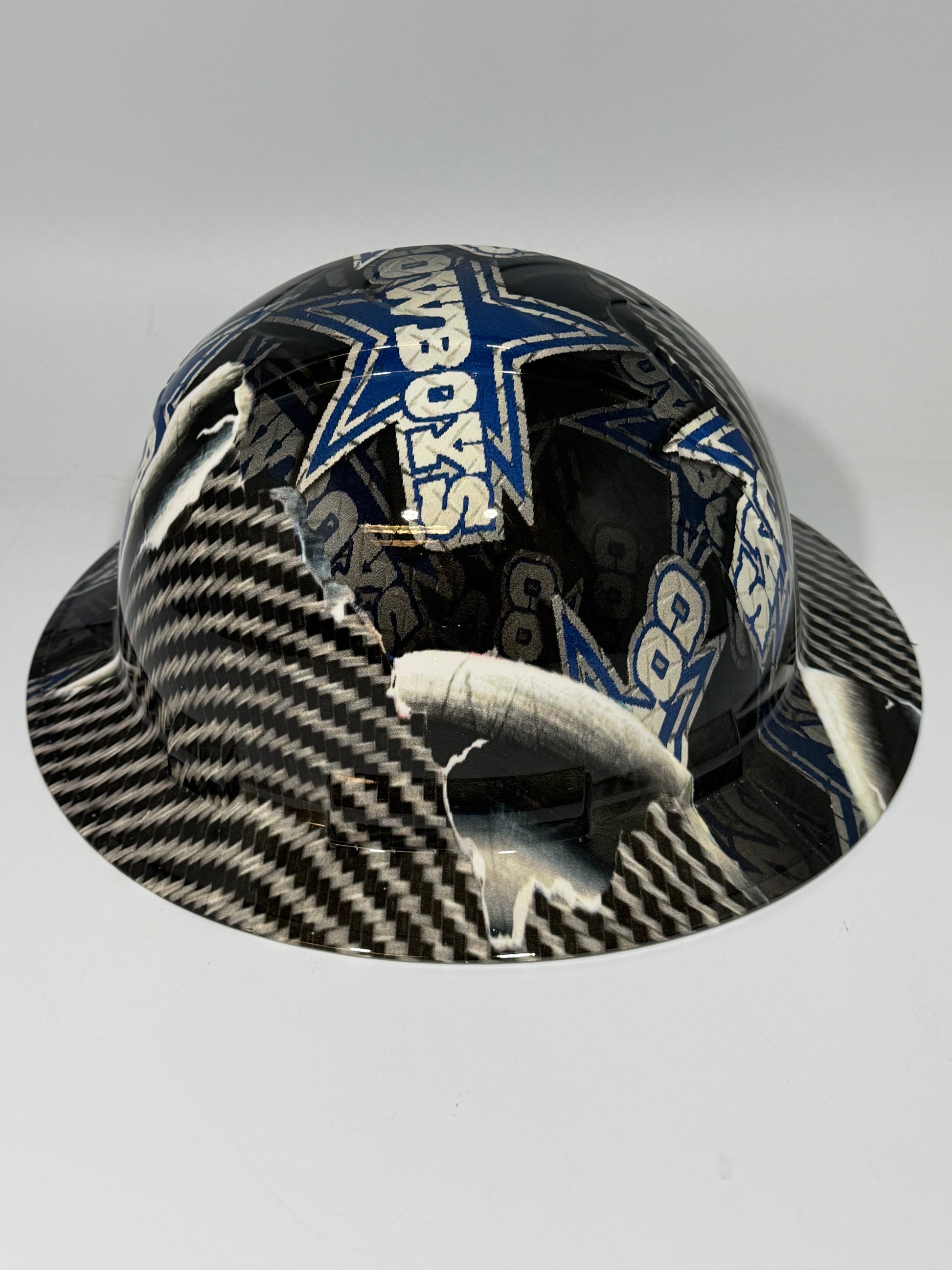 Full Brim Hard Hat Hydro Dipped COWBOYS RIP TEAR CARBON FIBER